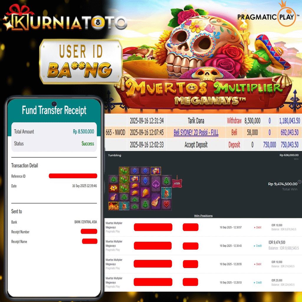 Selamat kepada member setia KURNIATOTO BA**NG Telah menang dalam permainan SLOT MUERTOS MULTIPLIER RP 8,500,000, – LUNAS langsung mendarat ke rekening tanpa bertele – tele atau syarat apapun. Kami ucapkan terimakasih telah mempercayakan KURNIATOTO sebagai situs bandar terpercaya yang dijamin aman dikarenakan berapapun kemenangan member pasti LUNAS!