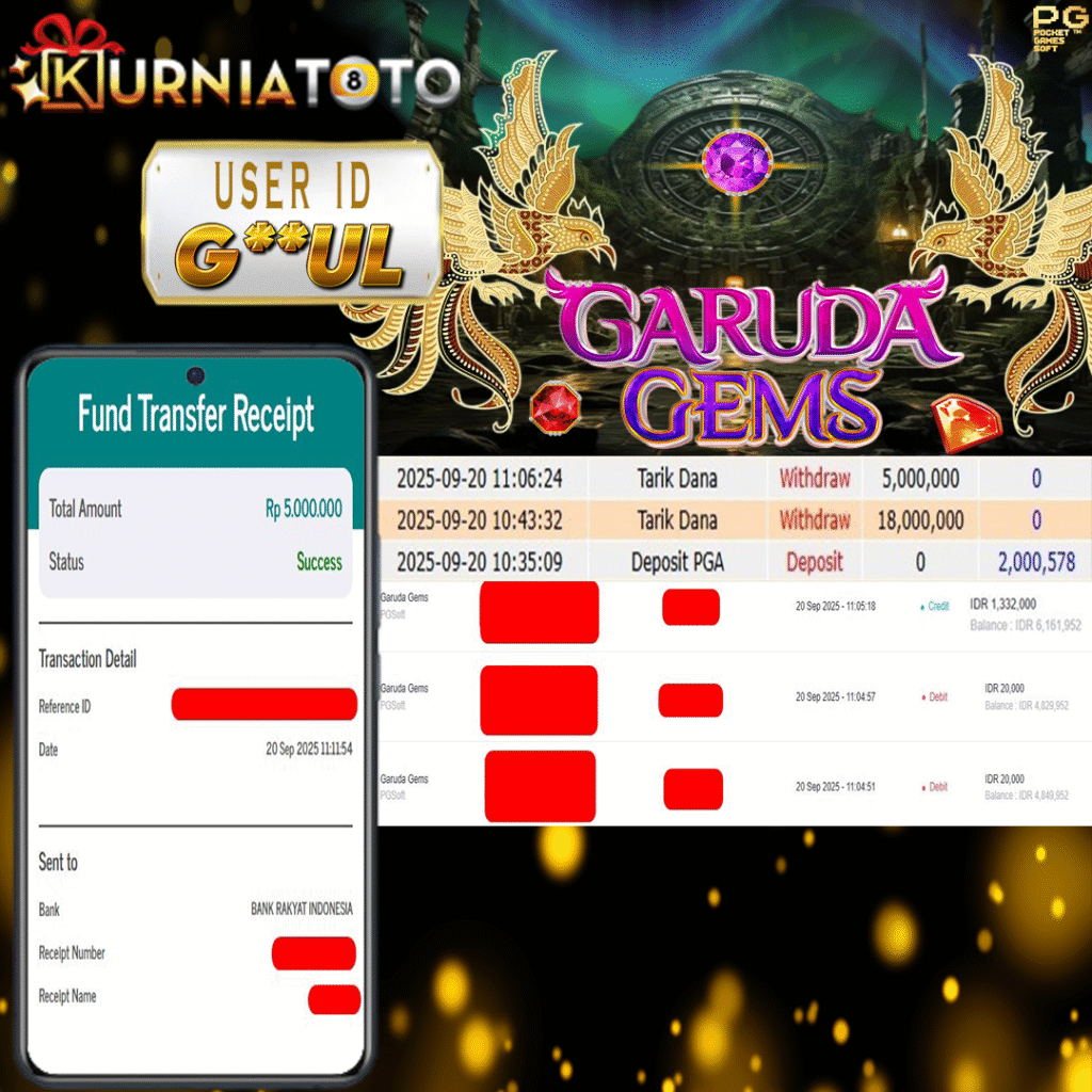 Selamat kepada member setia KURNIATOTO ID G**UL Telah menang dalam permainan SLOT GARUDA GEMS RP 5,000,000 – LUNAS langsung mendarat ke rekening tanpa bertele – tele atau syarat apapun. Kami ucapkan terimakasih telah mempercayakan KURNIATOTO sebagai situs bandar terpercaya yang dijamin aman dikarenakan berapapun kemenangan member pasti LUNAS!