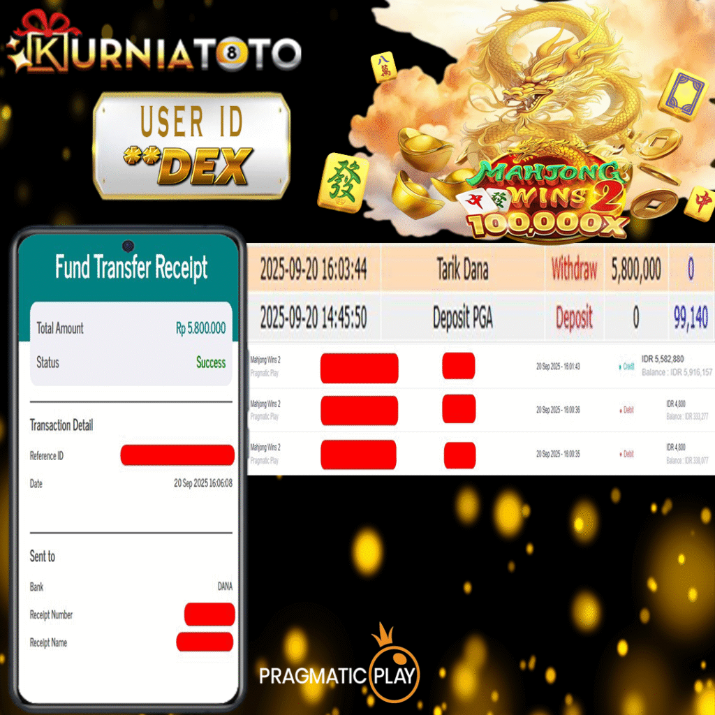 Selamat kepada member setia KURNIATOTO ID **DEX Telah menang dalam permainan SLOT MAHJONG WINS 2 100.000X RP 5,800,000, – LUNAS langsung mendarat ke rekening tanpa bertele – tele atau syarat apapun. Kami ucapkan terimakasih telah mempercayakan KURNIATOTO sebagai situs bandar terpercaya yang dijamin aman dikarenakan berapapun kemenangan member pasti LUNAS!