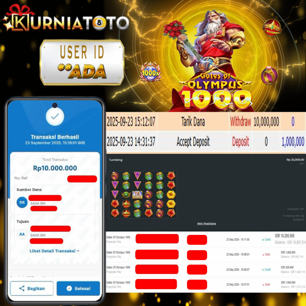 Selamat kepada member setia KURNIATOTO ID **ADA Telah menang dalam permainan SLOT GATES OF OLYMPUS 1000 RP 10,000,000, – LUNAS langsung mendarat ke rekening tanpa bertele – tele atau syarat apapun. Kami ucapkan terimakasih telah mempercayakan KURNIATOTO sebagai situs bandar terpercaya yang dijamin aman dikarenakan berapapun kemenangan member pasti LUNAS!