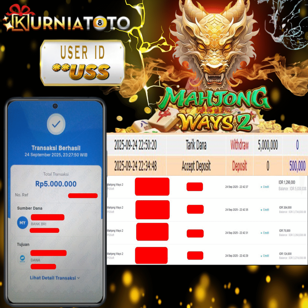 Selamat kepada member setia KURNIATOTO ID ***USS Telah menang dalam permainan SLOT MAHJONG WAYS 2 RP 5,000,000, – LUNAS langsung mendarat ke rekening tanpa bertele – tele atau syarat apapun. Kami ucapkan terimakasih telah mempercayakan KURNIATOTO sebagai situs bandar terpercaya yang dijamin aman dikarenakan berapapun kemenangan member pasti LUNAS!