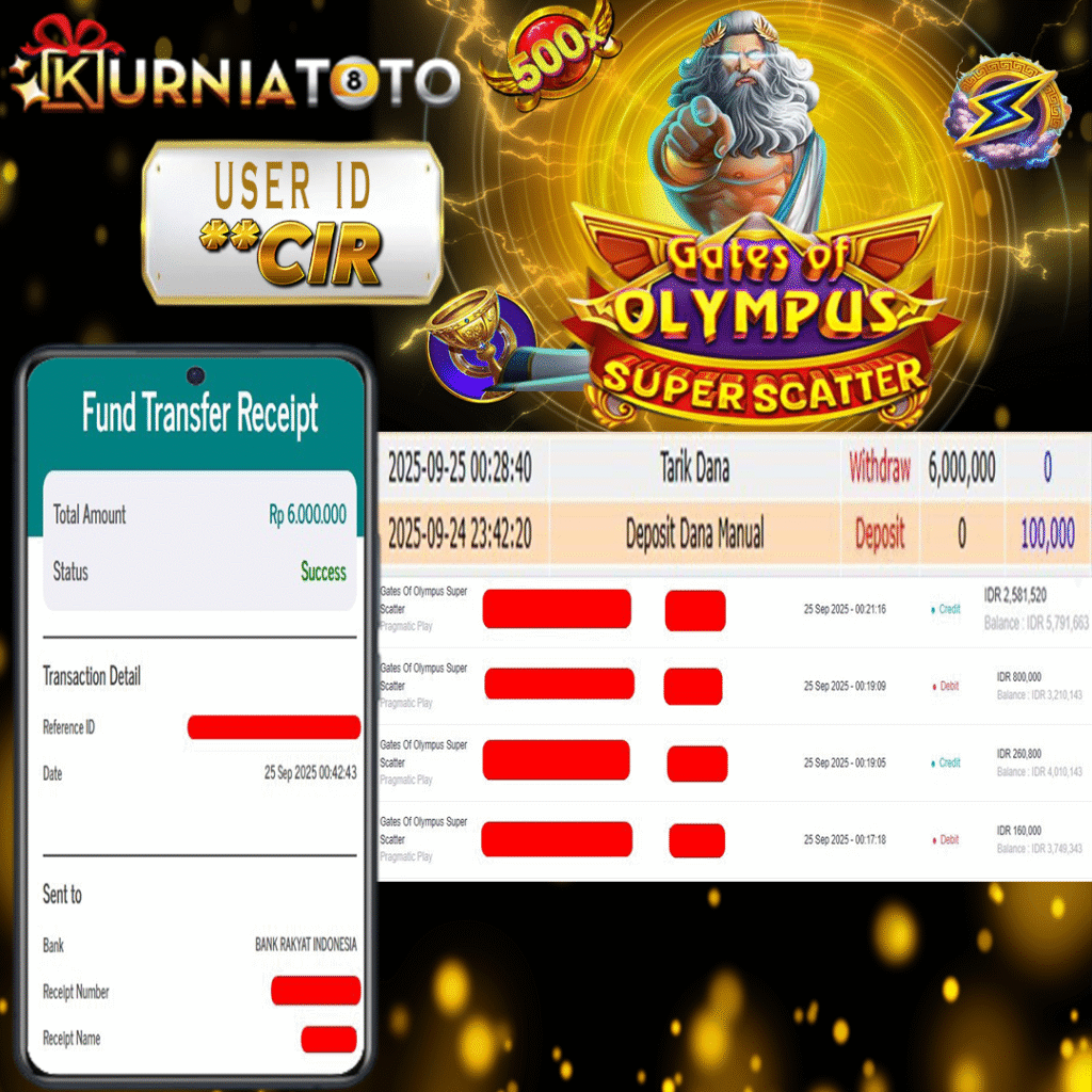 Selamat kepada member setia KURNIATOTO ID ***CIRTelah menang dalam permainan SLOT GATES OF OLYMPUS SUPER SCATTER RP 6,000,000, – LUNAS langsung mendarat ke rekening tanpa bertele – tele atau syarat apapun. Kami ucapkan terimakasih telah mempercayakan KURNIATOTO sebagai situs bandar terpercaya yang dijamin aman dikarenakan berapapun kemenangan member pasti LUNAS!
