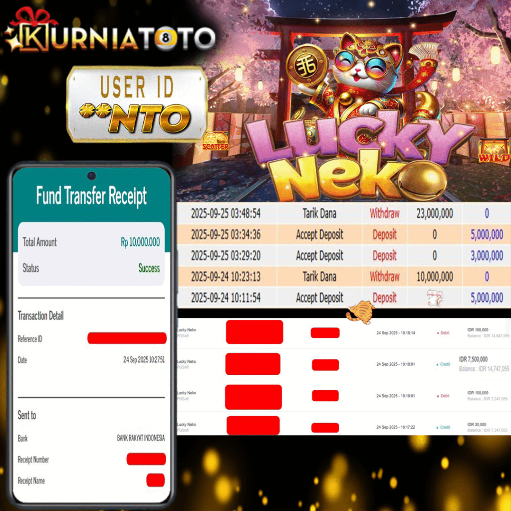 Selamat kepada member setia KURNIATOTO ID **NTO Telah menang dalam permainan SLOT LUCKY NEKO RP 10,000,000, – LUNAS langsung mendarat ke rekening tanpa bertele – tele atau syarat apapun. Kami ucapkan terimakasih telah mempercayakan KURNIATOTO sebagai situs bandar terpercaya yang dijamin aman dikarenakan berapapun kemenangan member pasti LUNAS!
