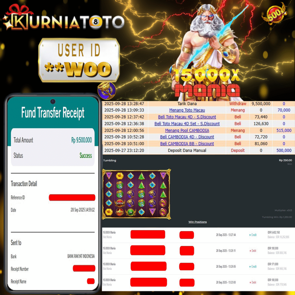 Selamat kepada member setia KURNIATOTO ID **WOO Telah menang dalam permainan SLOT 15.000X MANIA RP 9,500,000, – LUNAS langsung mendarat ke rekening tanpa bertele – tele atau syarat apapun. Kami ucapkan terimakasih telah mempercayakan KURNIATOTO sebagai situs bandar terpercaya yang dijamin aman dikarenakan berapapun kemenangan member pasti LUNAS!