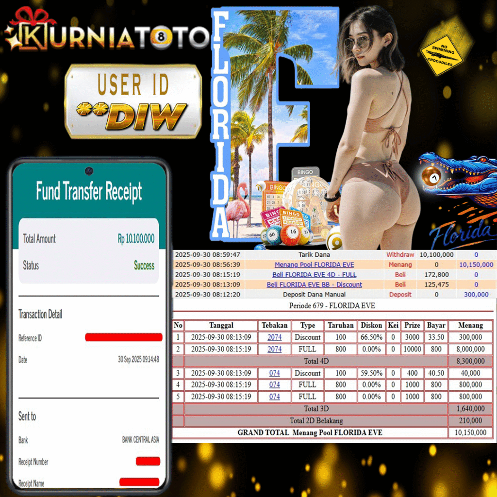 Selamat kepada member setia KURNIATOTO ID **DIW Telah menang dalam permainan FLORIDA EVE POOLS RP 10,100,000, – LUNAS langsung mendarat ke rekening tanpa bertele – tele atau syarat apapun. Kami ucapkan terimakasih telah mempercayakan KURNIATOTO sebagai situs bandar terpercaya yang dijamin aman dikarenakan berapapun kemenangan member pasti LUNAS!