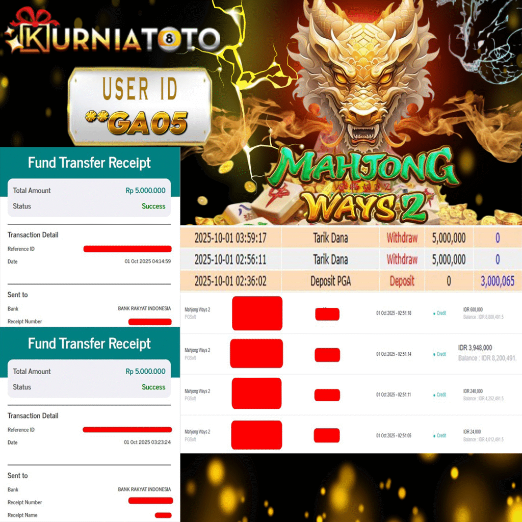 Selamat kepada member setia KURNIATOTO ID **GA05 Telah menang dalam permainan SLOT MAHJONG WAYS 2 RP 10,000,000, – LUNAS langsung mendarat ke rekening tanpa bertele – tele atau syarat apapun. Kami ucapkan terimakasih telah mempercayakan KURNIATOTO sebagai situs bandar terpercaya yang dijamin aman dikarenakan berapapun kemenangan member pasti LUNAS!