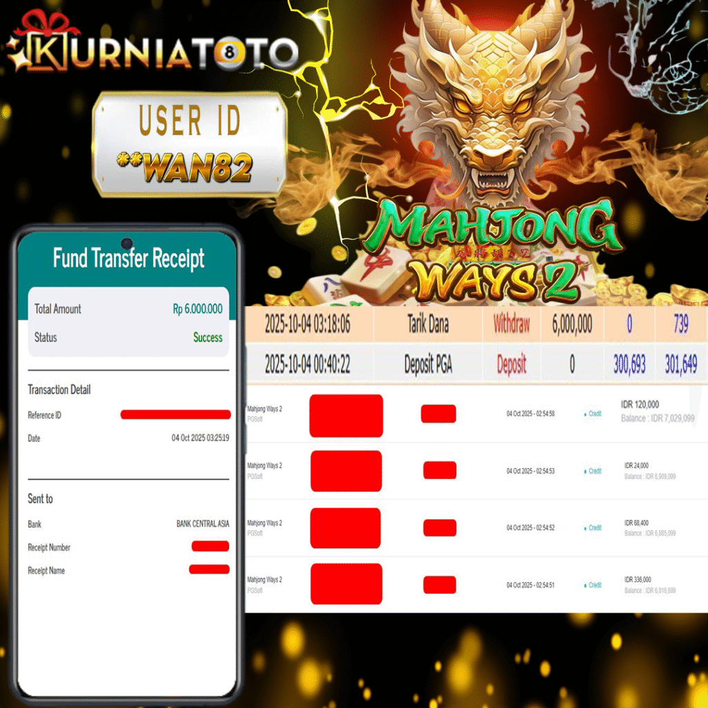Selamat kepada member setia KURNIATOTO ID **WAN82 Telah menang dalam permainan SLOT MAHJONG WAYS 2 RP 6,000,000 – LUNAS langsung mendarat ke rekening tanpa bertele – tele atau syarat apapun. Kami ucapkan terimakasih telah mempercayakan KURNIATOTO sebagai situs bandar terpercaya yang dijamin aman dikarenakan berapapun kemenangan member pasti LUNAS!