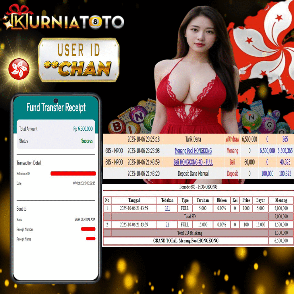 Selamat kepada member setia KURNIATOTO ID : **CHAN Telah menang dalam permainan HONGKONG RP 6,500,000, – LUNAS langsung mendarat ke rekening tanpa bertele – tele atau syarat apapun. Kami ucapkan terimakasih telah mempercayakan KURNIATOTO sebagai situs bandar terpercaya yang dijamin aman dikarenakan berapapun kemenangan member pasti LUNAS!