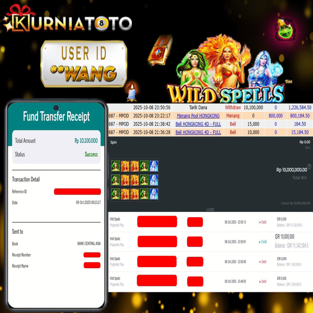Selamat kepada member setia KURNIATOTO ID **WANG Telah menang dalam permainan SLOT ONLINE PRAGMATIC WILD SPELLS RP 10,100,000, – LUNAS langsung mendarat ke rekening tanpa bertele – tele atau syarat apapun. Kami ucapkan terimakasih telah mempercayakan KURNIATOTO sebagai situs bandar terpercaya yang dijamin aman dikarenakan berapapun kemenangan member pasti LUNAS!