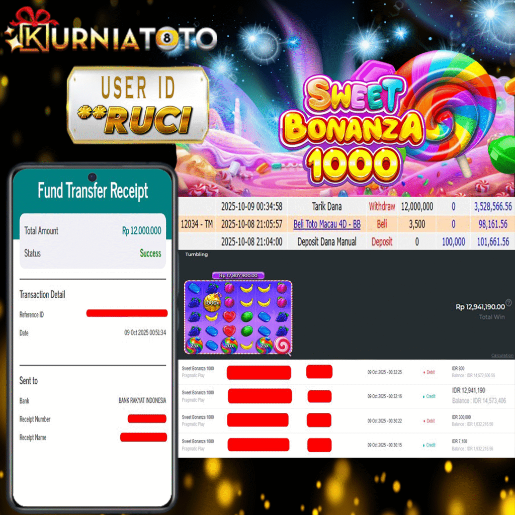 Selamat kepada member setia KURNIATOTO ID **RUCI Telah menang dalam permainan SLOT SWEET BONANZA 1000 RP 12,000,000 – LUNAS langsung mendarat ke rekening tanpa bertele – tele atau syarat apapun. Kami ucapkan terimakasih telah mempercayakan KURNIATOTO sebagai situs bandar terpercaya yang dijamin aman dikarenakan berapapun kemenangan member pasti LUNAS!