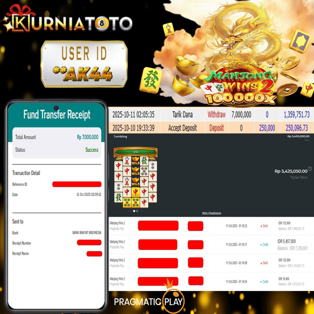 Selamat kepada member setia KURNIATOTO ID **AK44 Telah menang dalam permainan SLOT MAHJONG WINS 2 100.000X RP 7,000,000, – LUNAS langsung mendarat ke rekening tanpa bertele – tele atau syarat apapun. Kami ucapkan terimakasih telah mempercayakan KURNIATOTO sebagai situs bandar terpercaya yang dijamin aman dikarenakan berapapun kemenangan member pasti LUNAS!