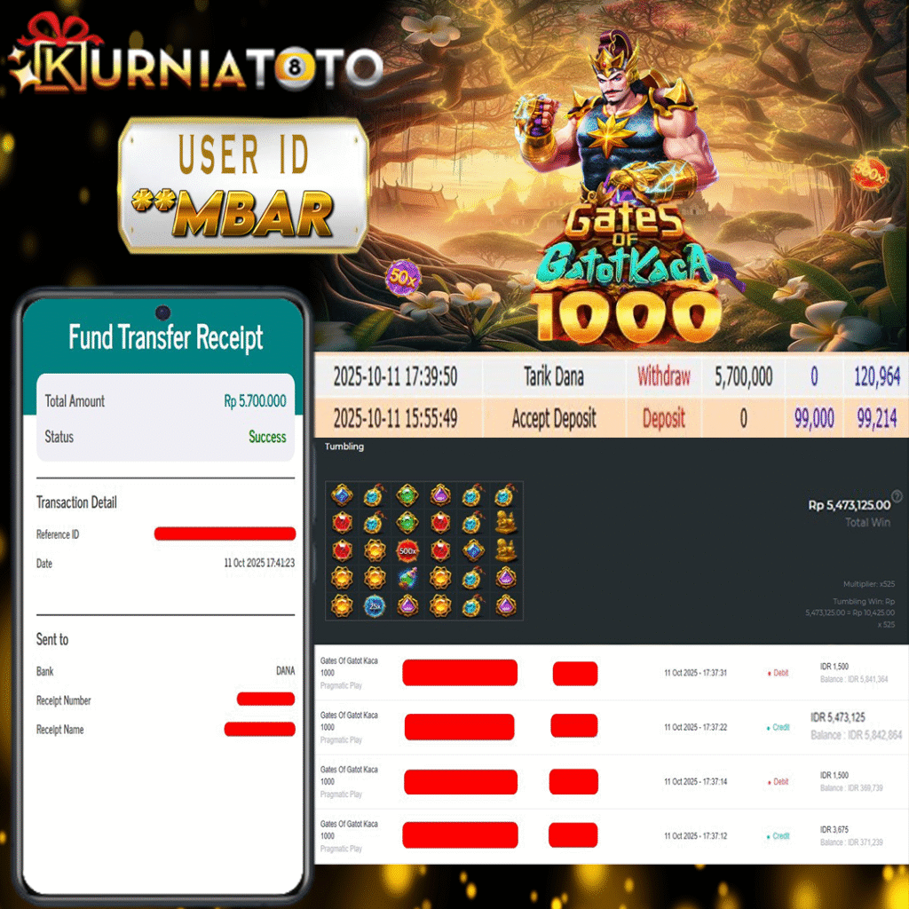 Selamat kepada member setia KURNIATOTO ID **MBAR Telah menang dalam permainan SLOT GATES OF GATOTKACA 1000 RP 5,700,000, – LUNAS langsung mendarat ke rekening tanpa bertele – tele atau syarat apapun. Kami ucapkan terimakasih telah mempercayakan KURNIATOTO sebagai situs bandar terpercaya yang dijamin aman dikarenakan berapapun kemenangan member pasti LUNAS!