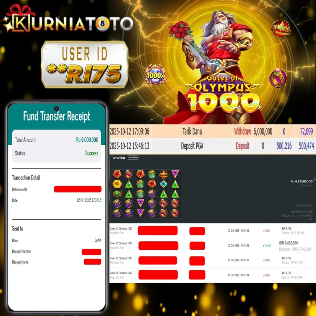 Selamat kepada member setia KURNIATOTO ID **RI75 Telah menang dalam permainan SLOT GATES OF OLYMPUS 1000 RP 6,000,000, – LUNAS langsung mendarat ke rekening tanpa bertele – tele atau syarat apapun. Kami ucapkan terimakasih telah mempercayakan KURNIATOTO sebagai situs bandar terpercaya yang dijamin aman dikarenakan berapapun kemenangan member pasti LUNAS!