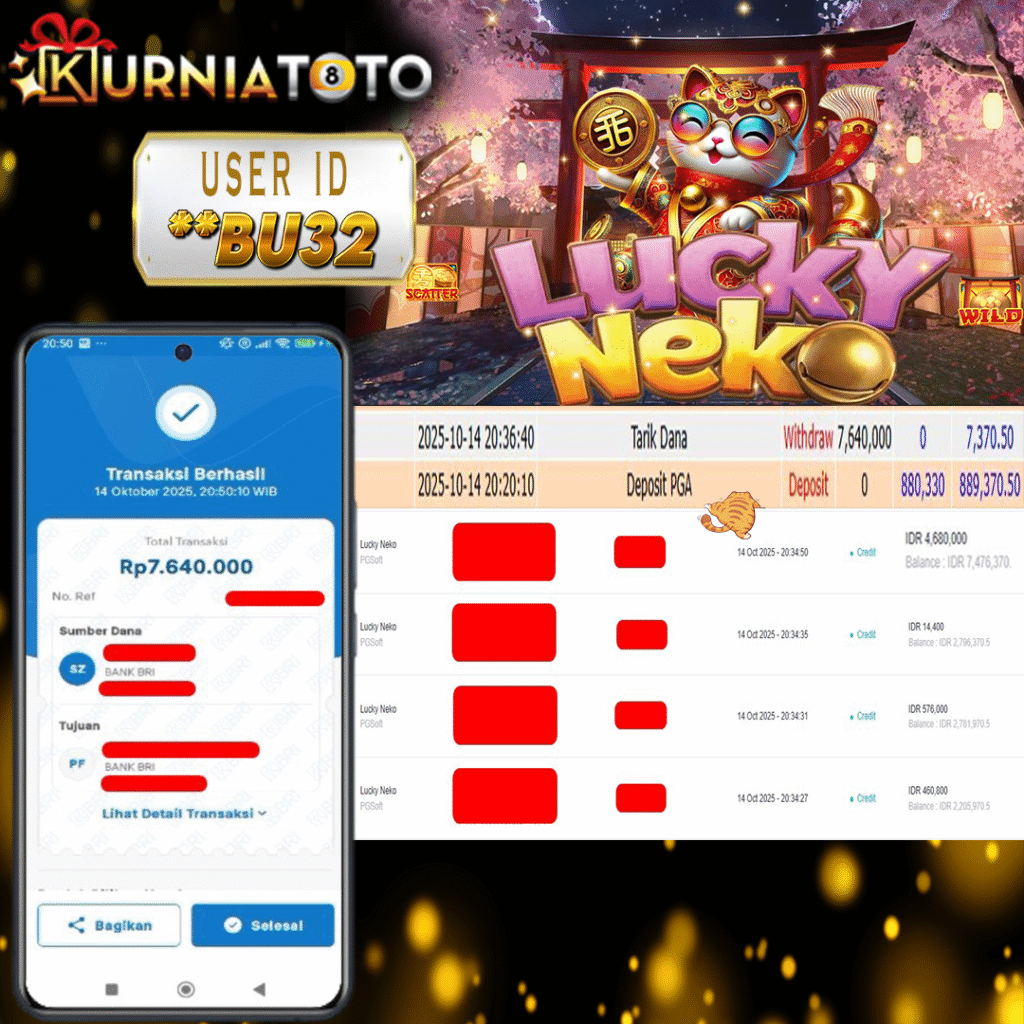 Selamat kepada member setia KURNIATOTO ID **BU32 Telah menang dalam permainan SLOT LUCKY NEKO RP 7,640,000, – LUNAS langsung mendarat ke rekening tanpa bertele – tele atau syarat apapun. Kami ucapkan terimakasih telah mempercayakan KURNIATOTO sebagai situs bandar terpercaya yang dijamin aman dikarenakan berapapun kemenangan member pasti LUNAS!