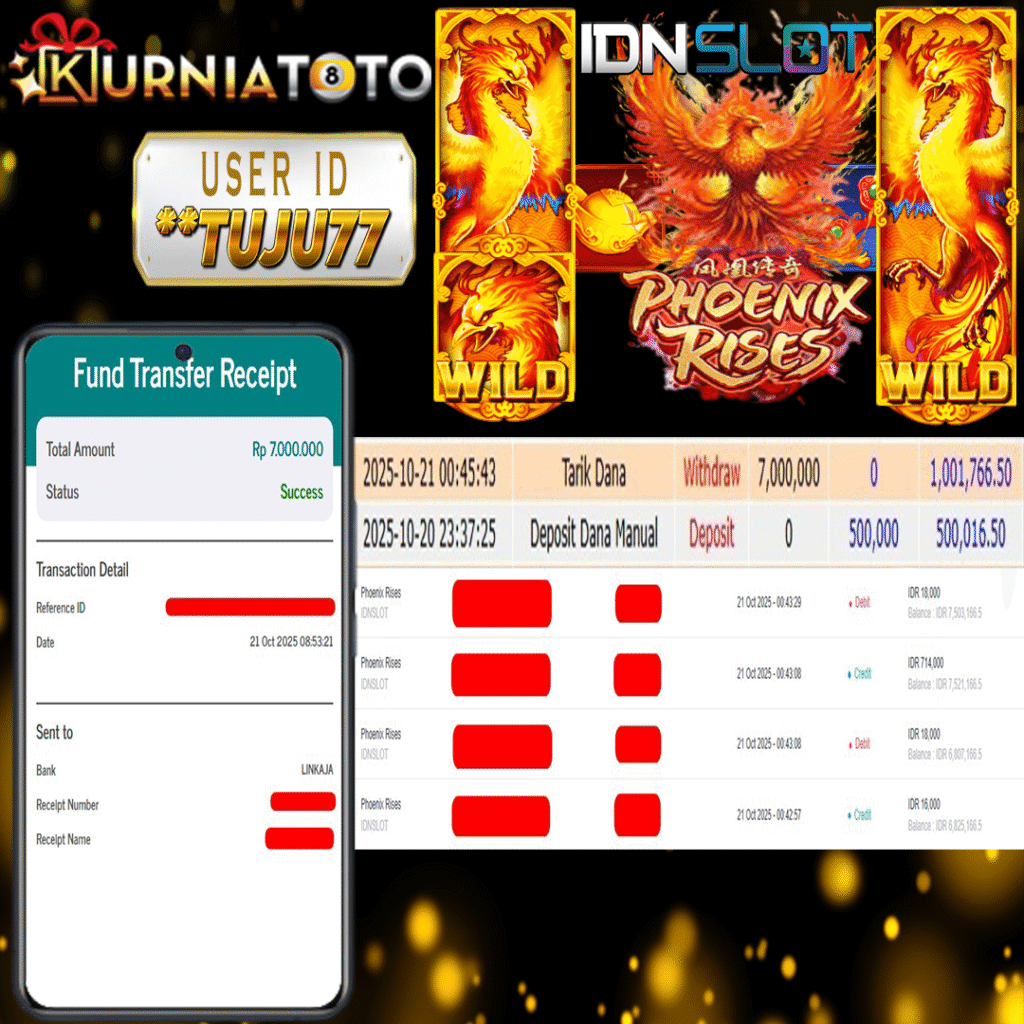 Selamat kepada member setia KURNIATOTO ID **ADI55 Telah menang dalam permainan IDN SLOT PHOENIX RISES RP 7,000,000, – LUNAS langsung mendarat ke rekening tanpa bertele – tele atau syarat apapun. Kami ucapkan terimakasih telah mempercayakan KURNIATOTO sebagai situs bandar terpercaya yang dijamin aman dikarenakan berapapun kemenangan member pasti LUNAS!