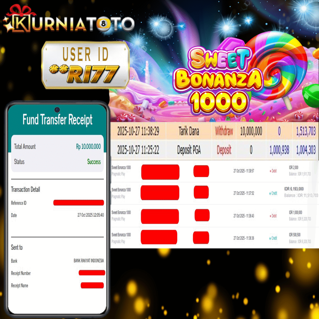 Selamat kepada member setia KURNIATOTO ID **RI77 Telah menang dalam permainan SLOT SWEET BONANZA 1000 RP 10,000,000 – LUNAS langsung mendarat ke rekening tanpa bertele – tele atau syarat apapun. Kami ucapkan terimakasih telah mempercayakan KURNIATOTO sebagai situs bandar terpercaya yang dijamin aman dikarenakan berapapun kemenangan member pasti LUNAS!