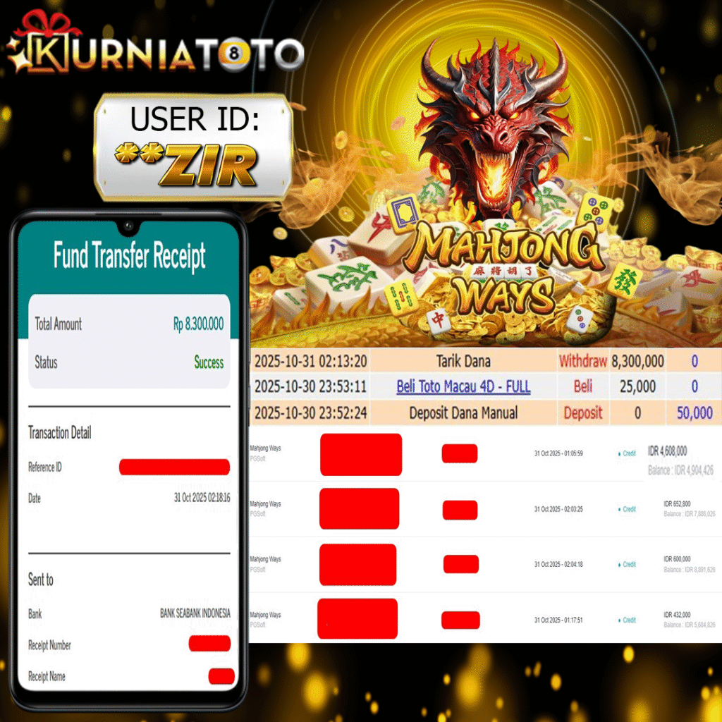 Selamat kepada member setia KURNIATOTO ID **ZIR Telah menang dalam permainan SLOT MAHJONG WAYS RP 8,300,000, – LUNAS langsung mendarat ke rekening tanpa bertele – tele atau syarat apapun. Kami ucapkan terimakasih telah mempercayakan KURNIATOTO sebagai situs bandar terpercaya yang dijamin aman dikarenakan berapapun kemenangan member pasti LUNAS!