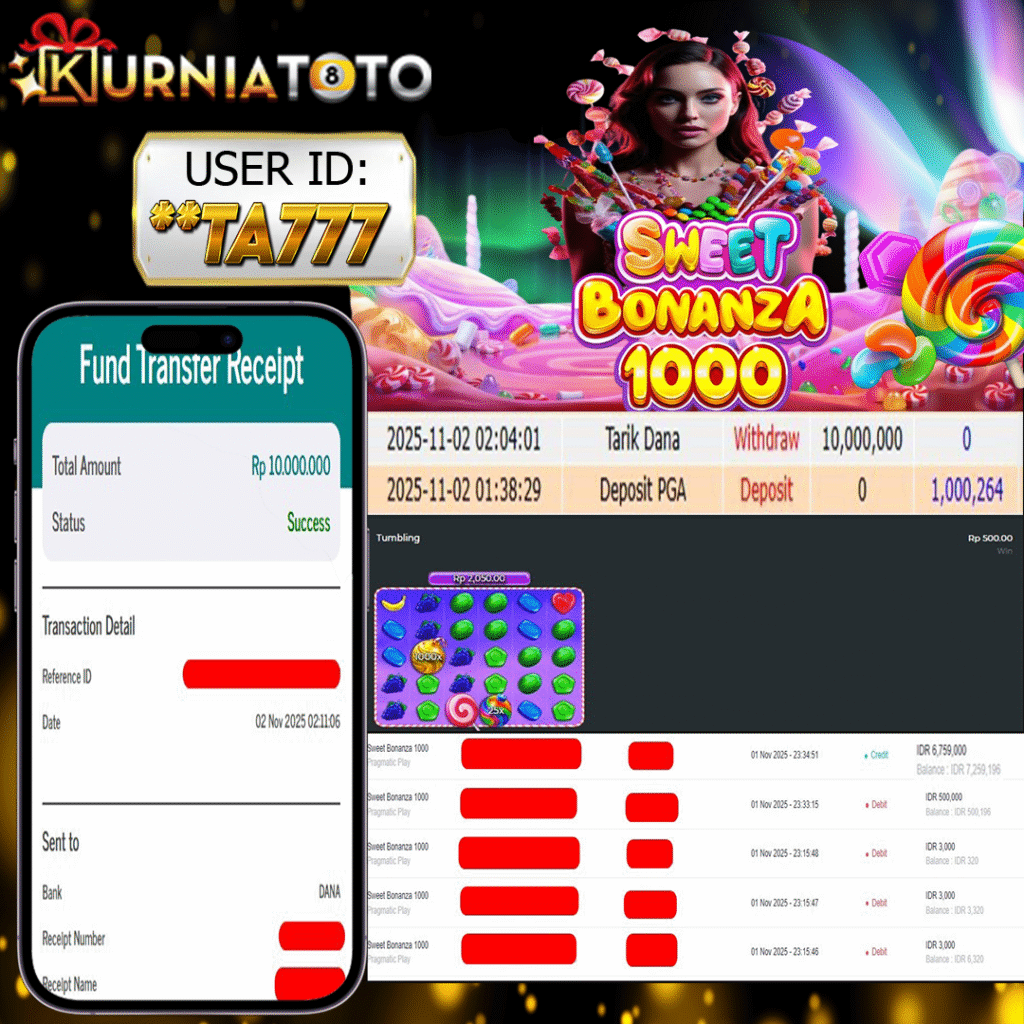 Selamat kepada member setia KURNIATOTO ID **TA777 Telah menang dalam permainan SLOT SWEET BONANZA 1000 RP 10,000,000 – LUNAS langsung mendarat ke rekening tanpa bertele – tele atau syarat apapun. Kami ucapkan terimakasih telah mempercayakan KURNIATOTO sebagai situs bandar terpercaya yang dijamin aman dikarenakan berapapun kemenangan member pasti LUNAS!