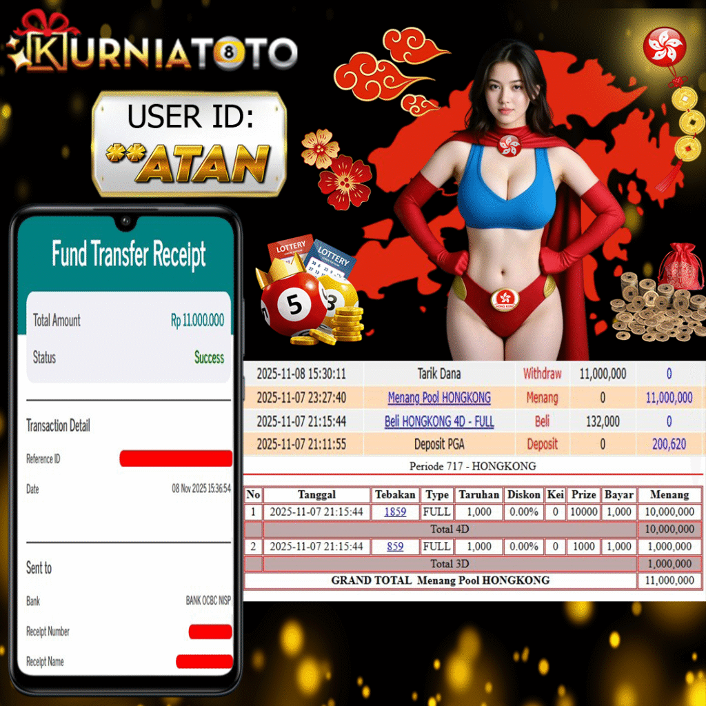 Selamat kepada member setia KURNIATOTO ID : **ATAN Telah menang dalam permainan HONGKONG RP 11,000,000, – LUNAS langsung mendarat ke rekening tanpa bertele – tele atau syarat apapun. Kami ucapkan terimakasih telah mempercayakan KURNIATOTO sebagai situs bandar terpercaya yang dijamin aman dikarenakan berapapun kemenangan member pasti LUNAS!