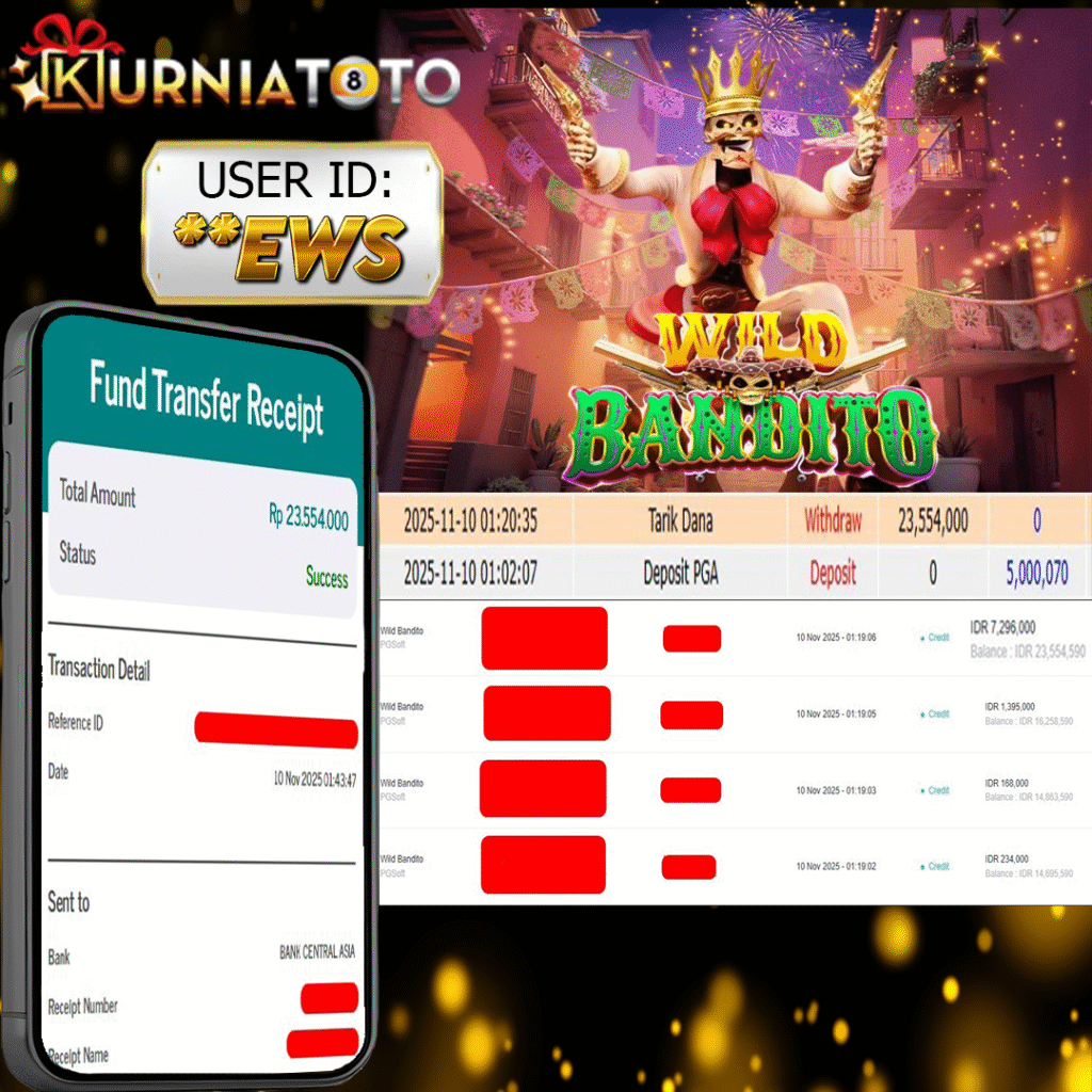 Selamat kepada member setia KURNIATOTO ID **EWS Telah menang dalam permainan SLOT WILD BANDITO RP 23,554,000, – LUNAS langsung mendarat ke rekening tanpa bertele – tele atau syarat apapun. Kami ucapkan terimakasih telah mempercayakan KURNIATOTO sebagai situs bandar terpercaya yang dijamin aman dikarenakan berapapun kemenangan member pasti LUNAS!
