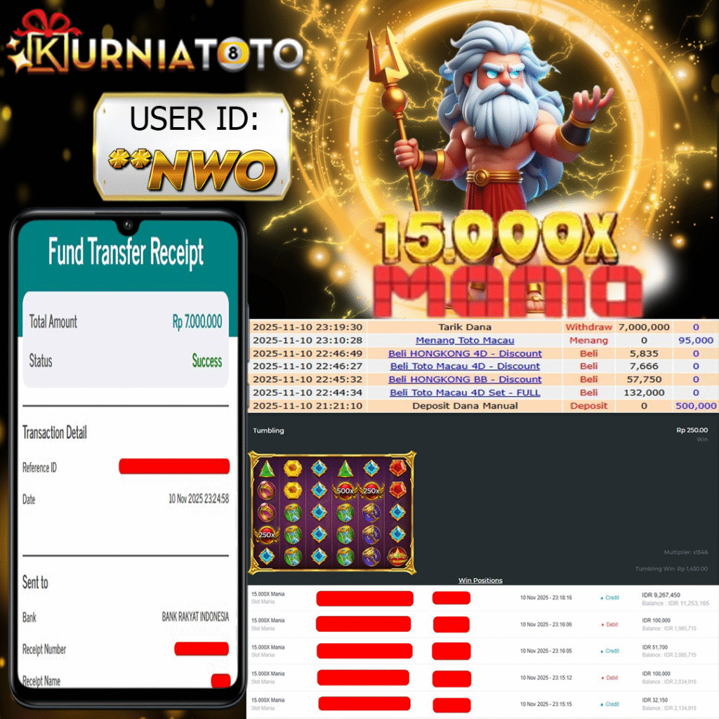 Selamat kepada member setia KURNIATOTO ID **NWO Telah menang dalam permainan SLOT 15.000X MANIA RP 7,000,000, – LUNAS langsung mendarat ke rekening tanpa bertele – tele atau syarat apapun. Saat ini Kami ucapkan terimakasih telah mempercayakan KURNIATOTO sebagai situs bandar terpercaya yang dijamin aman dikarenakan berapapun kemenangan member pasti LUNAS!