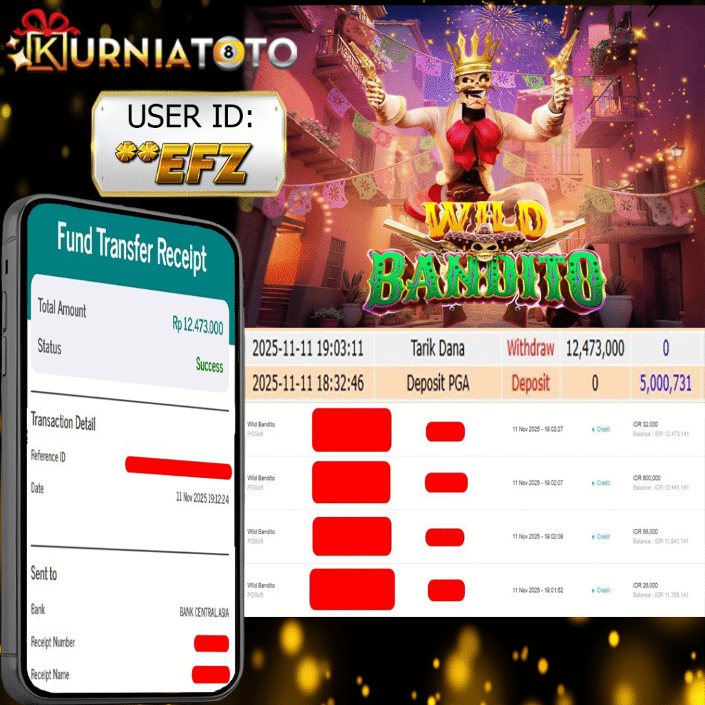 Selamat kepada member setia KURNIATOTO ID **EFZ Telah menang dalam permainan SLOT WILD BANDITO RP 12,473,000, – LUNAS langsung mendarat ke rekening tanpa bertele – tele atau syarat apapun. Kami ucapkan terimakasih telah mempercayakan KURNIATOTO sebagai situs bandar terpercaya yang dijamin aman dikarenakan berapapun kemenangan member pasti LUNAS!