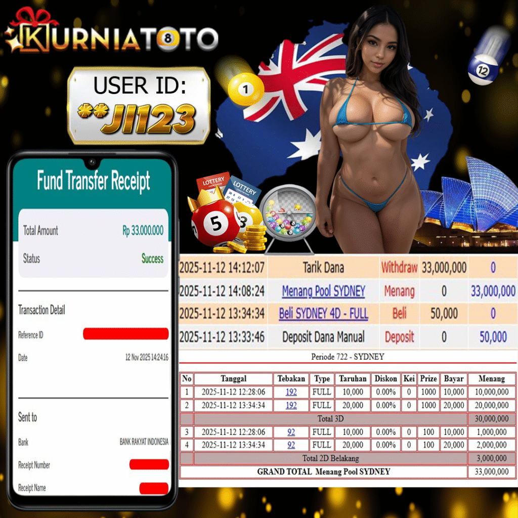 Salam JP kami ucapakan kepada member loyal Kurniatoto ID **JI123 . Bermain permainan TOGEL ONLINE SYDNEY dengan kemenangan sebesar Rp 33.000,000. Setelah mengisi form Withdrawl. langsung kami proses dengan layanan prioritas. Agar dananya masuk ke rekening dengan cepat tanpa harus menunggu lama . Pada kesempatan ini KURNIATOTO mengucapkan terima kasih atas memilih kurniatoto sebagai akses bandar Togel online yang terpecaya
