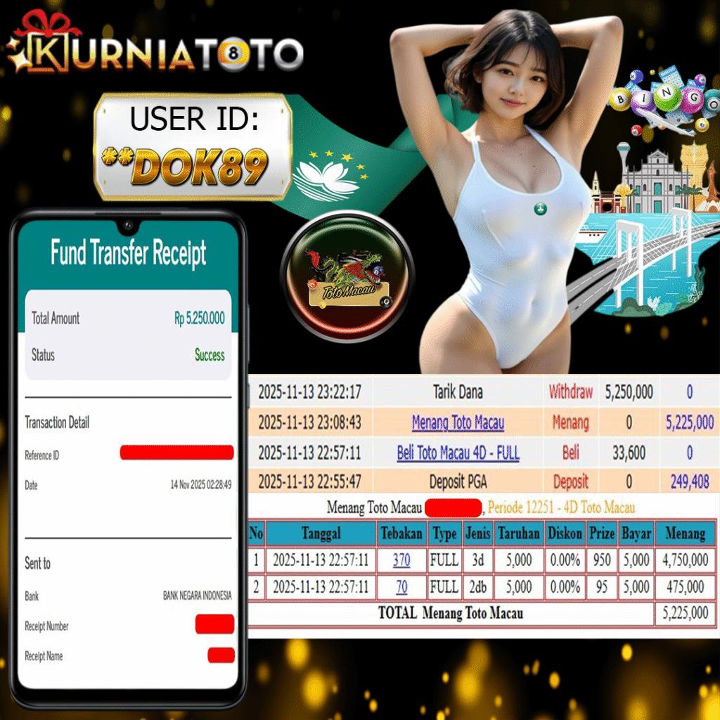 Selamat kepada member setia KURNIATOTO ID **DOK89 Telah menang dalam permainan TOTO MACAU RP 5,250,000, – LUNAS langsung mendarat ke rekening tanpa bertele – tele atau syarat apapun. Kami ucapkan terimakasih telah mempercayakan KURNIATOTO sebagai situs bandar terpercaya yang dijamin aman dikarenakan berapapun kemenangan member pasti LUNAS!