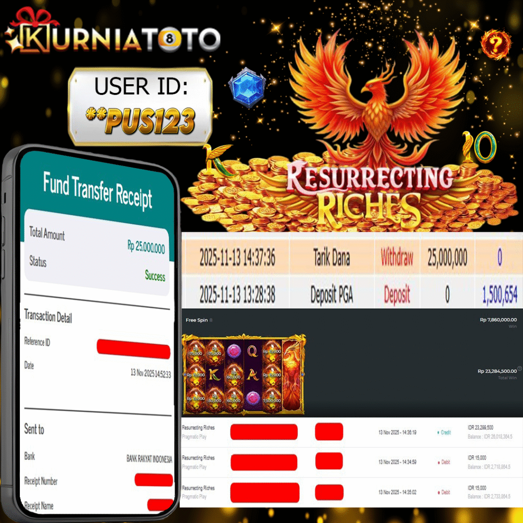 Selamat kepada member setia KURNIATOTO **PUS123 Telah menang dalam permainan SLOT RESURRECTING RICHES RP 25,000,000, – LUNAS langsung mendarat ke rekening tanpa bertele – tele atau syarat apapun. Kami ucapkan terimakasih telah mempercayakan KURNIATOTO sebagai situs bandar terpercaya yang dijamin aman dikarenakan berapapun kemenangan member pasti LUNAS!