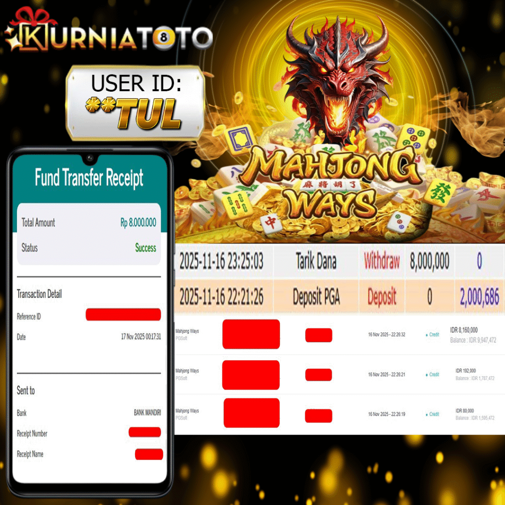 Selamat kepada member setia KURNIATOTO ID **TUL Telah menang dalam permainan SLOT MAHJONG WAYS RP 8,000,000, – LUNAS langsung mendarat ke rekening tanpa bertele – tele atau syarat apapun. Kami ucapkan terimakasih telah mempercayakan KURNIATOTO sebagai situs bandar terpercaya yang dijamin aman dikarenakan berapapun kemenangan member pasti LUNAS!