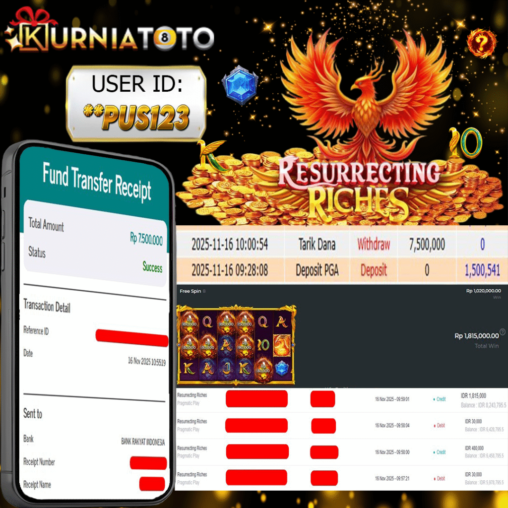 Selamat kepada member setia KURNIATOTO **PUS123 Telah menang dalam permainan SLOT RESURRECTING RICHES RP 7,500,000, – LUNAS langsung mendarat ke rekening tanpa bertele – tele atau syarat apapun. Kami ucapkan terimakasih telah mempercayakan KURNIATOTO sebagai situs bandar terpercaya yang dijamin aman dikarenakan berapapun kemenangan member pasti LUNAS!