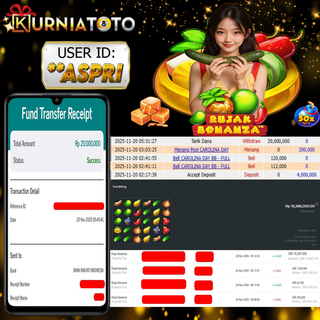 Selamat kepada member setia KURNIATOTO ID *ASPRI Telah menang dalam permainan SLOT RUJAK BONANZA RP 20,000,000, – LUNAS langsung mendarat ke rekening tanpa bertele – tele atau syarat apapun. Kami ucapkan terimakasih telah mempercayakan KURNIATOTO sebagai situs bandar terpercaya yang dijamin aman dikarenakan berapapun kemenangan member pasti LUNAS!