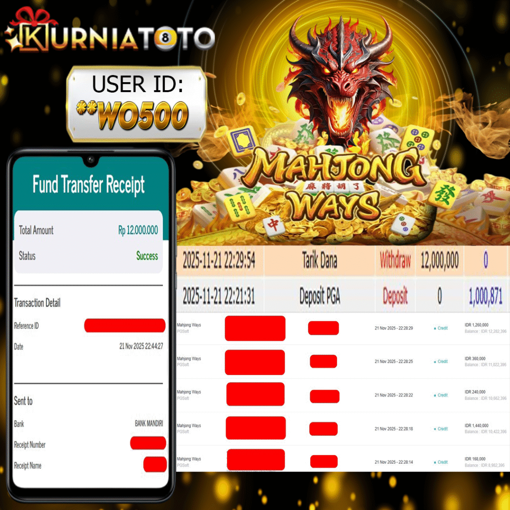 Selamat kepada member setia KURNIATOTO ID **W0500 Telah menang dalam permainan SLOT MAHJONG WAYS RP 12,000,000, – LUNAS langsung mendarat ke rekening tanpa bertele – tele atau syarat apapun. Kami ucapkan terimakasih telah mempercayakan KURNIATOTO sebagai situs bandar terpercaya yang dijamin aman dikarenakan berapapun kemenangan member pasti LUNAS!