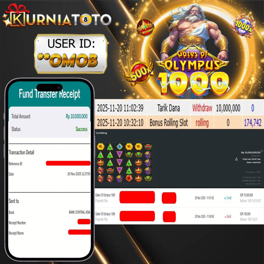 Selamat kepada member setia KURNIATOTO ID **MILI Telah menang dalam permainan SLOT GATES OF OLYMPUS 1000 RP 6,000,000, – LUNAS langsung mendarat ke rekening tanpa bertele – tele atau syarat apapun. Kami ucapkan terimakasih telah mempercayakan KURNIATOTO sebagai situs bandar terpercaya yang dijamin aman dikarenakan berapapun kemenangan member pasti LUNAS!