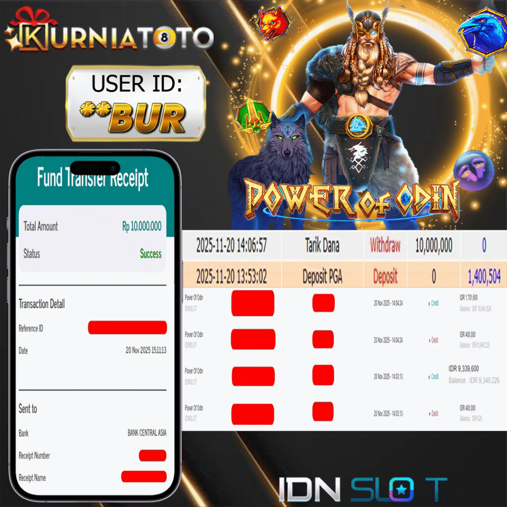 Selamat kepada member setia KURNIATOTO ID **BUR Telah menang dalam permainan SLOT POWER OF ODIN RP 10,000,000, – LUNAS langsung mendarat ke rekening tanpa bertele – tele atau syarat apapun. Kami ucapkan terimakasih telah mempercayakan KURNIATOTO sebagai situs bandar terpercaya yang dijamin aman dikarenakan berapapun kemenangan member pasti LUNAS!