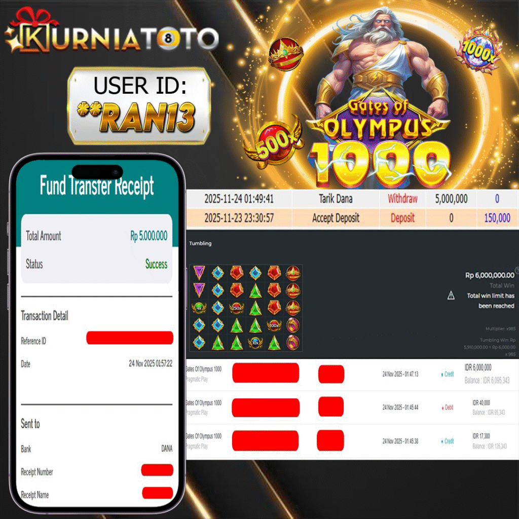 Selamat kepada member setia KURNIATOTO ID **RAN13 Telah menang dalam permainan SLOT GATES OF OLYMPUS 1000 RP 5,000,000, – LUNAS langsung mendarat ke rekening tanpa bertele – tele atau syarat apapun. Kami ucapkan terimakasih telah mempercayakan KURNIATOTO sebagai situs bandar terpercaya yang dijamin aman dikarenakan berapapun kemenangan member pasti LUNAS!