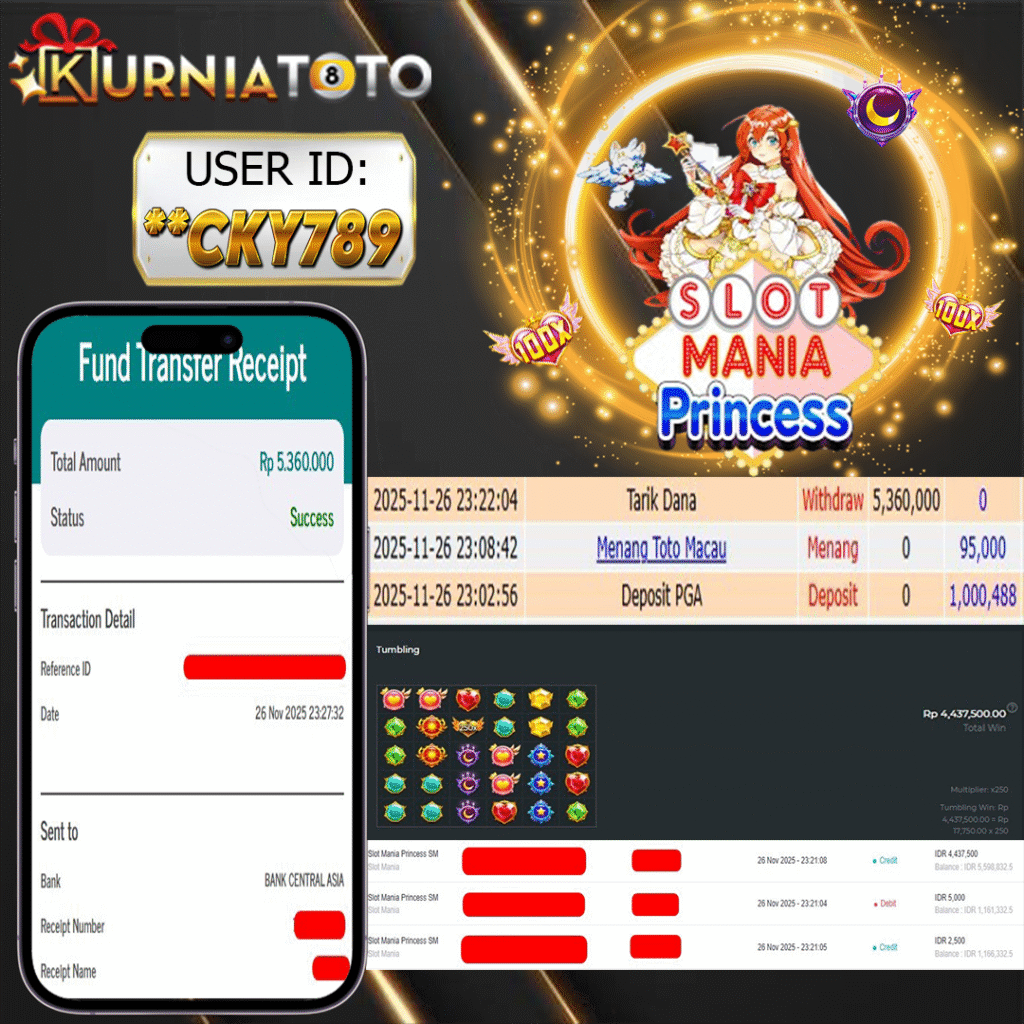 Selamat kepada member setia KURNIATOTO ID **CKY789 Telah menang dalam permainan SLOT MANIA PRINCESS RP 5,360,000, – LUNAS langsung mendarat ke rekening tanpa bertele – tele atau syarat apapun. Kami ucapkan terimakasih telah mempercayakan KURNIATOTO sebagai situs bandar terpercaya yang dijamin aman dikarenakan berapapun kemenangan member pasti LUNAS!