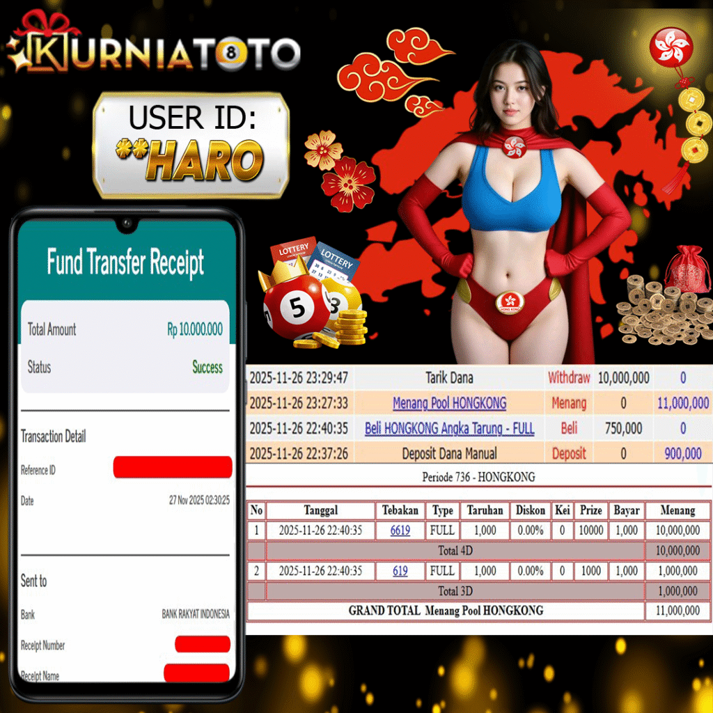 Selamat kepada member setia KURNIATOTO ID : **HARO Telah menang dalam permainan HONGKONG RP 10,000,000, – LUNAS langsung mendarat ke rekening tanpa bertele – tele atau syarat apapun. Kami ucapkan terimakasih telah mempercayakan KURNIATOTO sebagai situs bandar terpercaya yang dijamin aman dikarenakan berapapun kemenangan member pasti LUNAS!