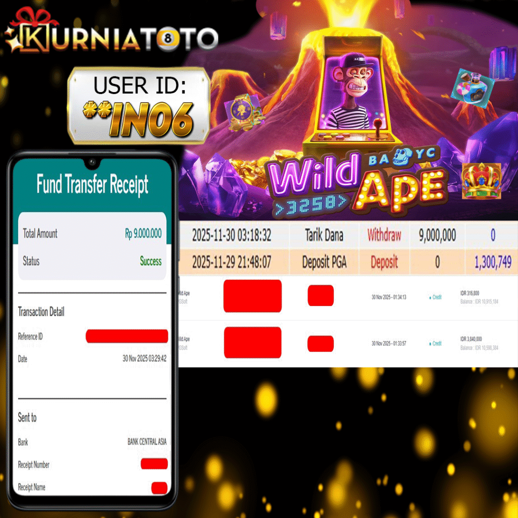Selamat kepada member setia KURNIATOTO ID **KO12 Telah menang dalam permainan SLOT WILD APE RP 9,000,000 – LUNAS langsung mendarat ke rekening tanpa bertele – tele atau syarat apapun. Kami ucapkan terimakasih telah mempercayakan KURNIATOTO sebagai situs bandar terpercaya yang dijamin aman dikarenakan berapapun kemenangan member pasti LUNAS!