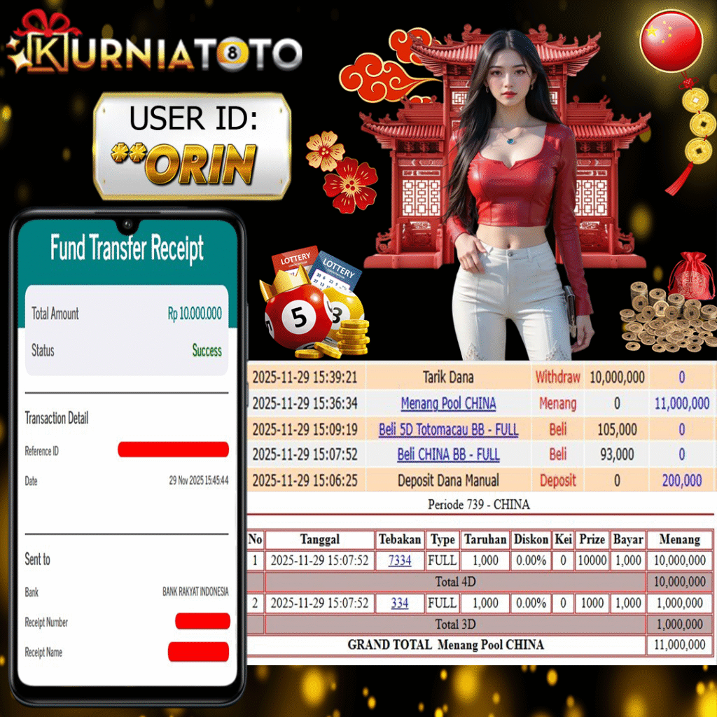 Selamat kepada member setia KURNIATOTO ID **ORIN Telah menang dalam permainan CHINA POOLS RP 10,000,000, – LUNAS langsung mendarat ke rekening tanpa bertele – tele atau syarat apapun. Kami ucapkan terimakasih telah mempercayakan KURNIATOTO sebagai situs bandar terpercaya yang dijamin aman dikarenakan berapapun kemenangan member pasti LUNAS!