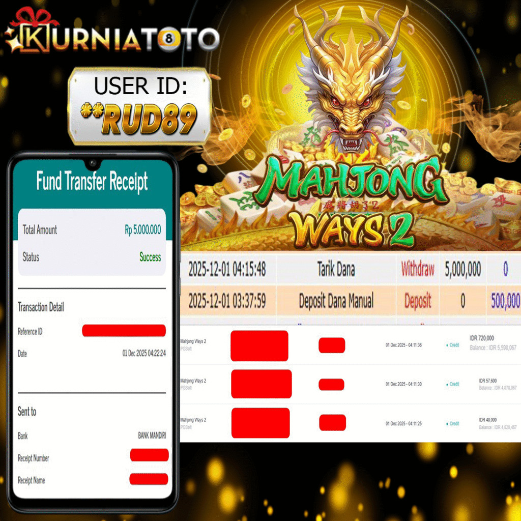Selamat kepada member setia KURNIATOTO ID **ER123 Telah menang dalam permainan SLOT MAHJONG WAYS 2 RP 5,000,000, – LUNAS langsung mendarat ke rekening tanpa bertele – tele atau syarat apapun. Kami ucapkan terimakasih telah mempercayakan KURNIATOTO sebagai situs bandar terpercaya yang dijamin aman dikarenakan berapapun kemenangan member pasti LUNAS!