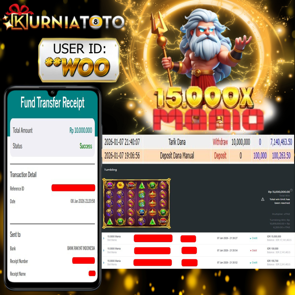 Selamat kepada member setia KURNIATOTO ID **WOO Telah menang dalam permainan SLOT 15.000X MANIA RP 10,000,000, – LUNAS langsung mendarat ke rekening tanpa bertele – tele atau syarat apapun. Saat ini Kami ucapkan terimakasih telah mempercayakan KURNIATOTO sebagai situs bandar terpercaya yang dijamin aman dikarenakan berapapun kemenangan member pasti LUNAS!