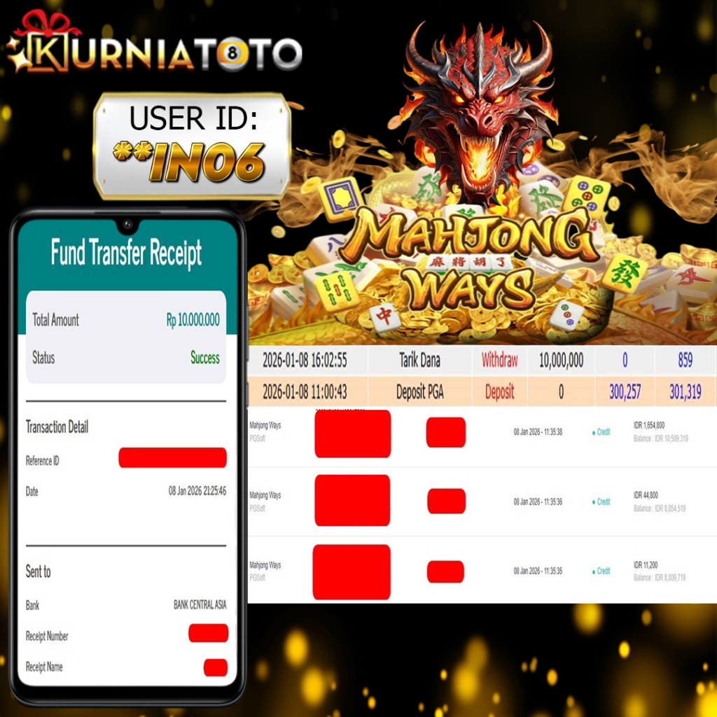 Selamat kepada member setia KURNIATOTO ID **IN06 Telah menang dalam permainan SLOT MAHJONG WAYS RP 10,000,000, – LUNAS langsung mendarat ke rekening tanpa bertele – tele atau syarat apapun. Kami ucapkan terimakasih telah mempercayakan KURNIATOTO sebagai situs bandar terpercaya yang dijamin aman dikarenakan berapapun kemenangan member pasti LUNAS!