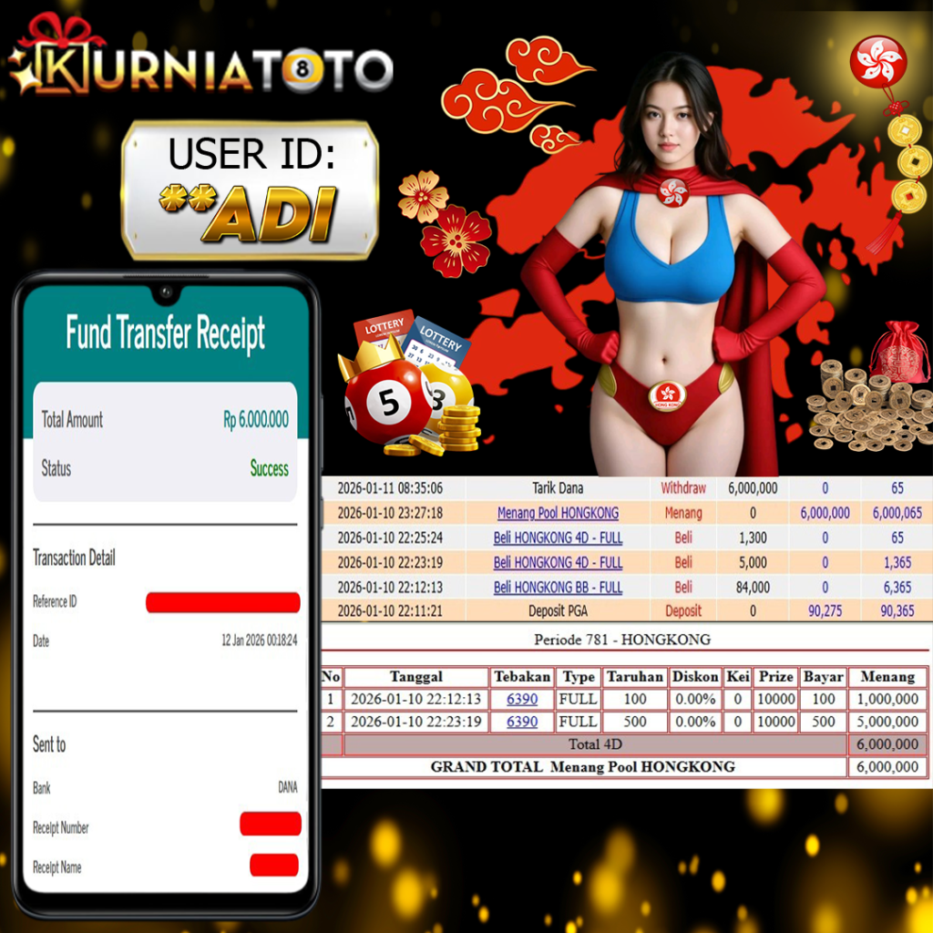 Selamat kepada member setia KURNIATOTO ID : **ADI Telah menang dalam permainan HONGKONG RP 6,000,000, – LUNAS langsung mendarat ke rekening tanpa bertele – tele atau syarat apapun. Kami ucapkan terimakasih telah mempercayakan KURNIATOTO sebagai situs bandar terpercaya yang dijamin aman dikarenakan berapapun kemenangan member pasti LUNAS!