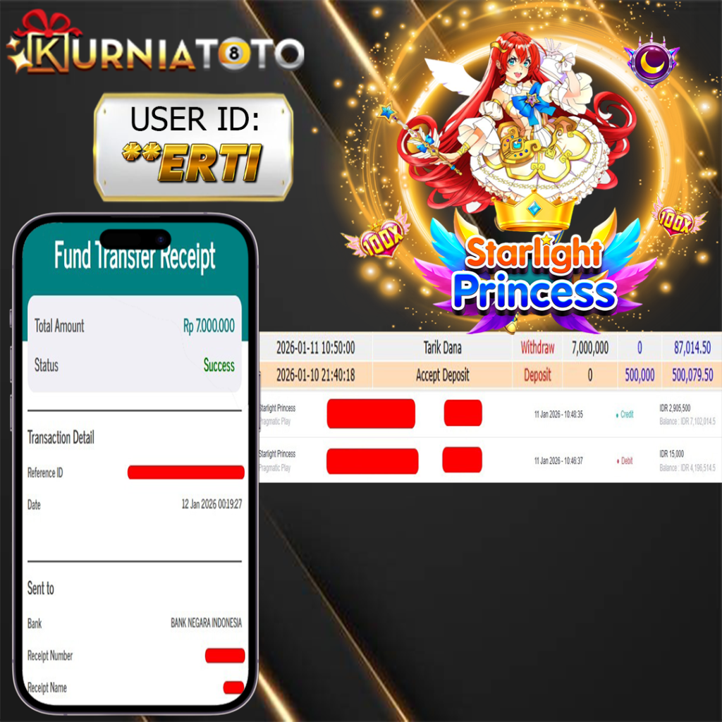 Selamat kepada member setia KURNIATOTO ID **ERTI Telah menang dalam permainan SLOT STARLIGHT PRINCESS RP 7,000,000, – LUNAS langsung mendarat ke rekening tanpa bertele – tele atau syarat apapun. Kami ucapkan terimakasih telah mempercayakan KURNIATOTO sebagai situs bandar terpercaya yang dijamin aman dikarenakan berapapun kemenangan member pasti LUNAS!