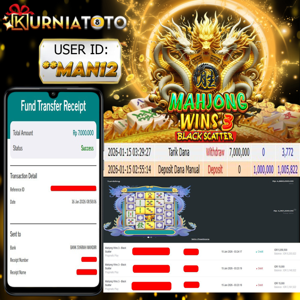 Selamat kepada member setia KURNIATOTO ID **MAN12 Telah menang dalam permainan SLOT MAHJONG WINS 7 BLACK SCATTER RP 5,000,000, – LUNAS langsung mendarat ke rekening tanpa bertele – tele atau syarat apapun. Kami ucapkan terimakasih telah mempercayakan KURNIATOTO sebagai situs bandar terpercaya yang dijamin aman dikarenakan berapapun kemenangan member pasti LUNAS!