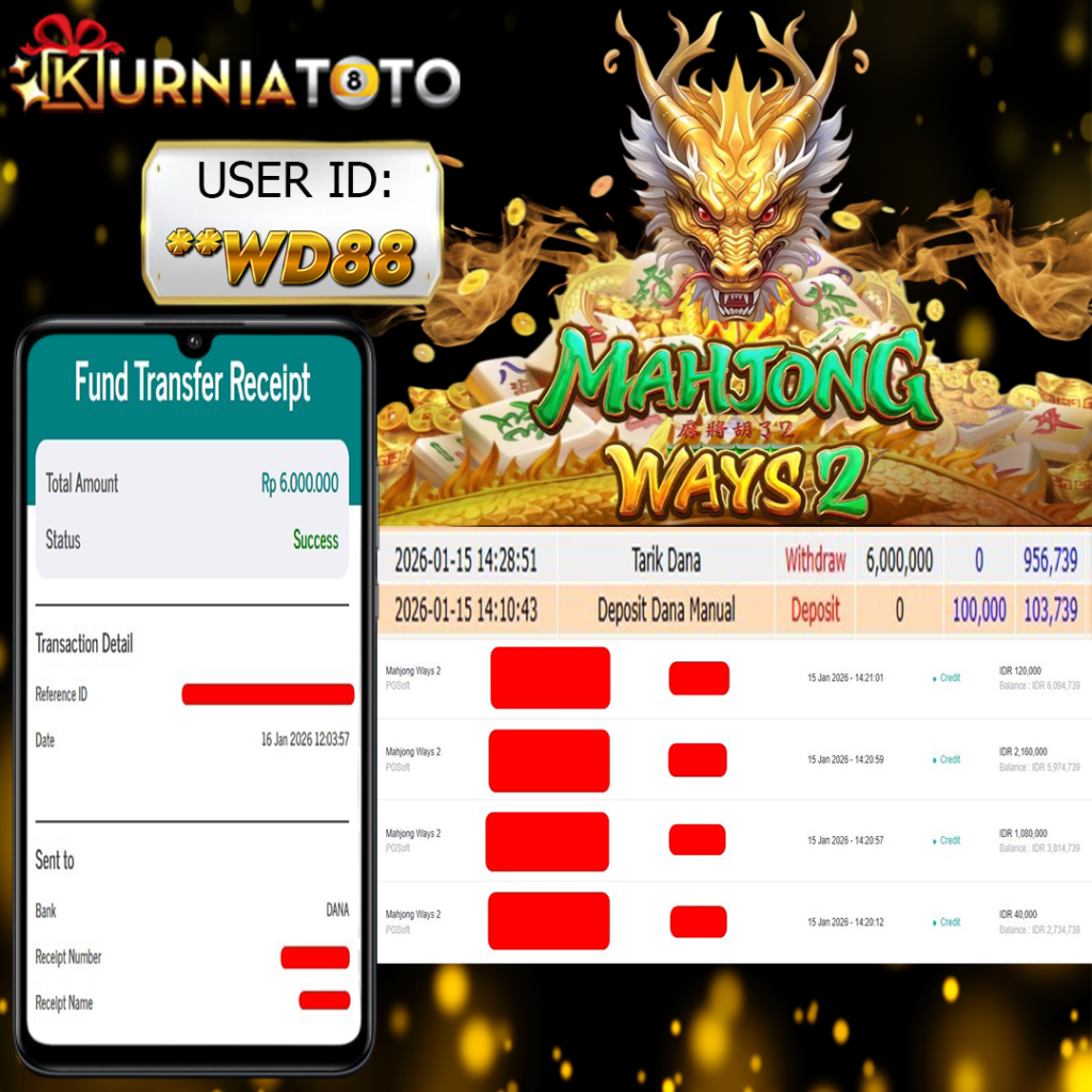 Selamat kepada member setia KURNIATOTO ID **WD88 Telah menang dalam permainan SLOT MAHJONG WAYS 2 RP 6,000,000, – LUNAS langsung mendarat ke rekening tanpa bertele – tele atau syarat apapun. Kami ucapkan terimakasih telah mempercayakan KURNIATOTO sebagai situs bandar terpercaya yang dijamin aman dikarenakan berapapun kemenangan member pasti LUNAS!