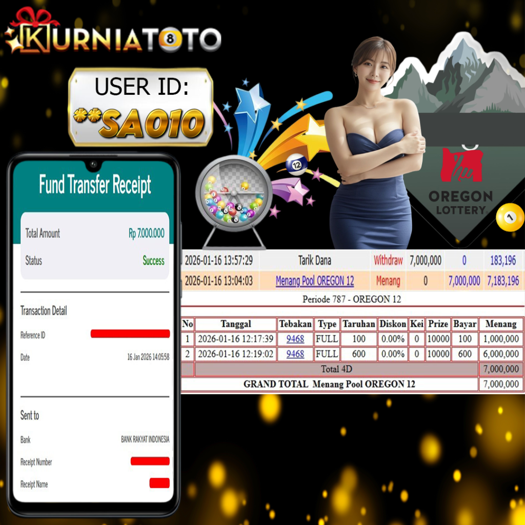 Selamat kepada member setia KURNIATOTO ID **SA010 Telah menang dalam permainan OREGON 12 POOLS RP 5,000,000, – LUNAS langsung mendarat ke rekening tanpa bertele – tele atau syarat apapun. Kami ucapkan terimakasih telah mempercayakan KURNIATOTO sebagai situs bandar terpercaya yang dijamin aman dikarenakan berapapun kemenangan member pasti LUNAS!