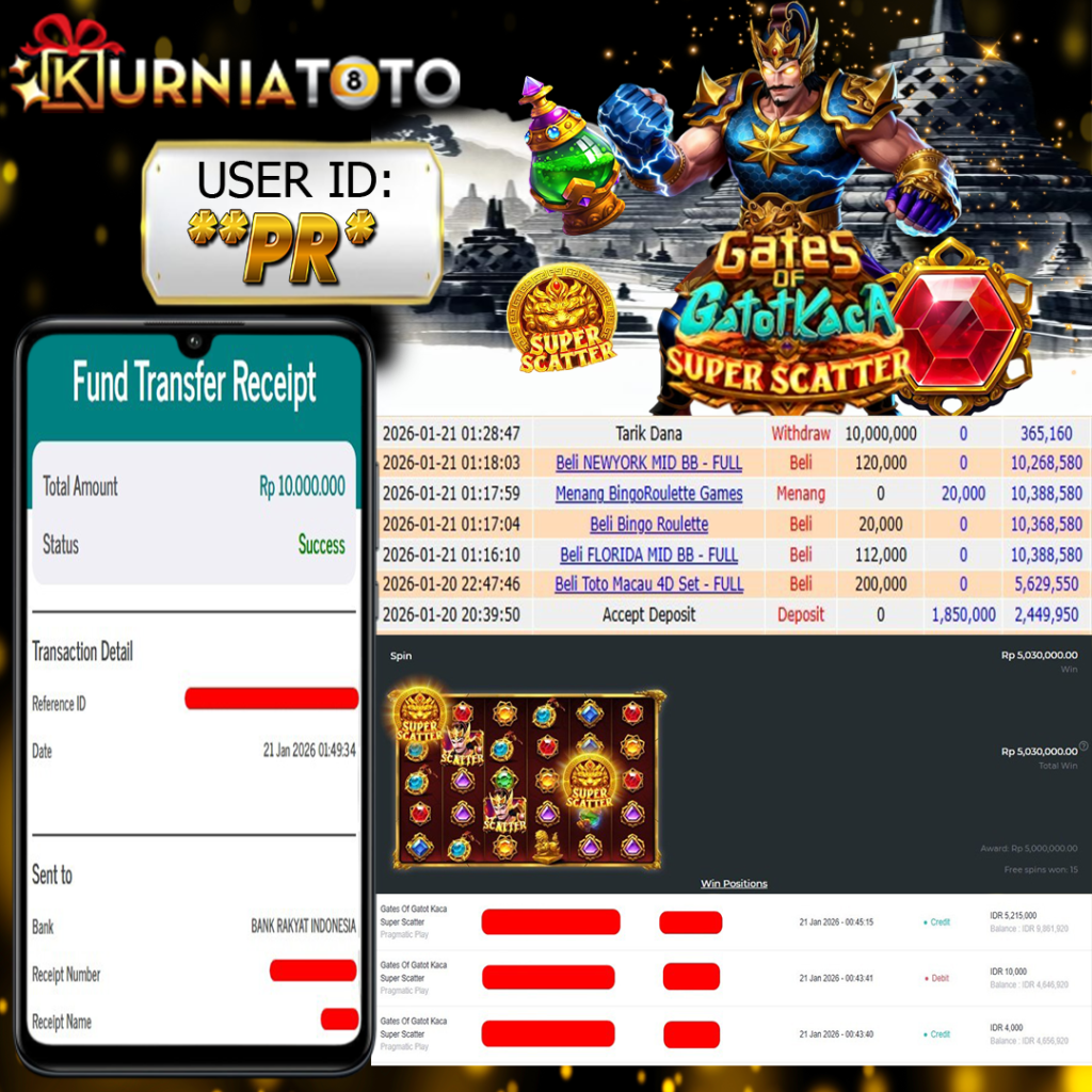 Selamat kepada member setia KURNIATOTO ID **PR* Telah menang dalam permainan SLOT GATES OF GATOTKACA SUPER SCATTER RP 10,000,000, – LUNAS langsung mendarat ke rekening tanpa bertele – tele atau syarat apapun. Kami ucapkan terimakasih telah mempercayakan KURNIATOTO sebagai situs bandar terpercaya yang dijamin aman dikarenakan berapapun kemenangan member pasti LUNAS!